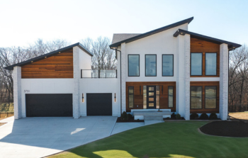 Exhibiting a contemporary façade, with a bold, monopitched design, the angled roof adds an increased perception of height to the two-story property.